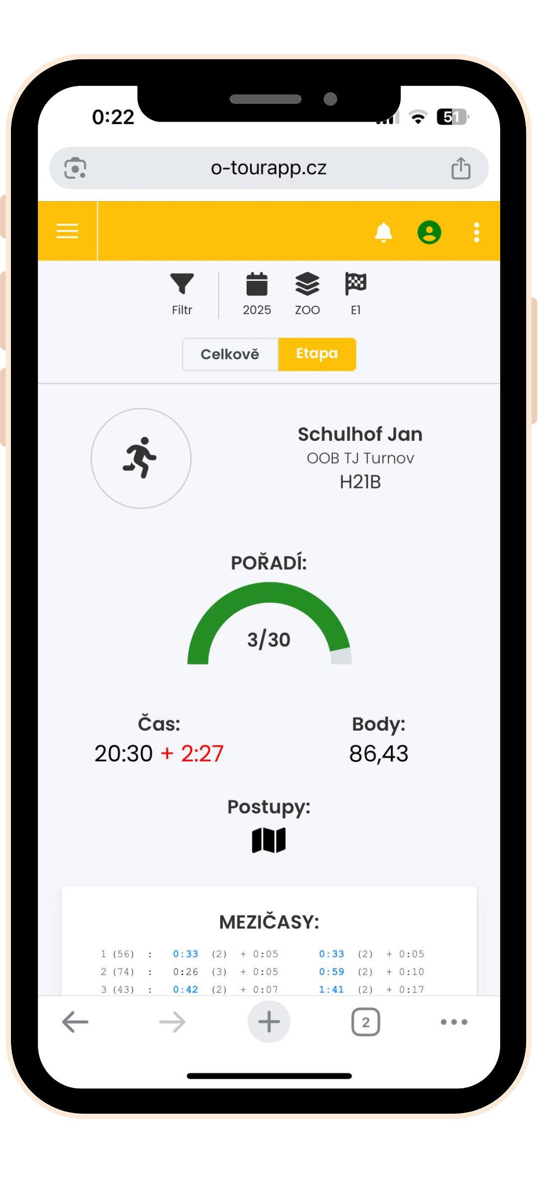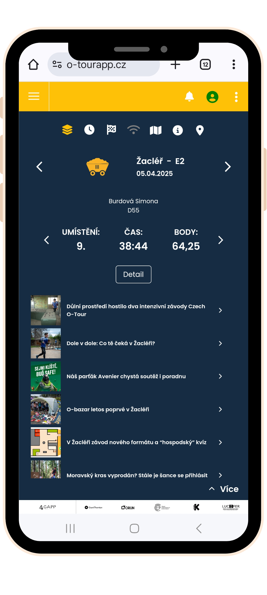 - Bonusový program: Sbírej body a získej bonusy nebo slevy u našich partnerů a dalších prodejců. Tuto funkce spustíme až na další kolo Czech O-Tour, zatím není k dispozici