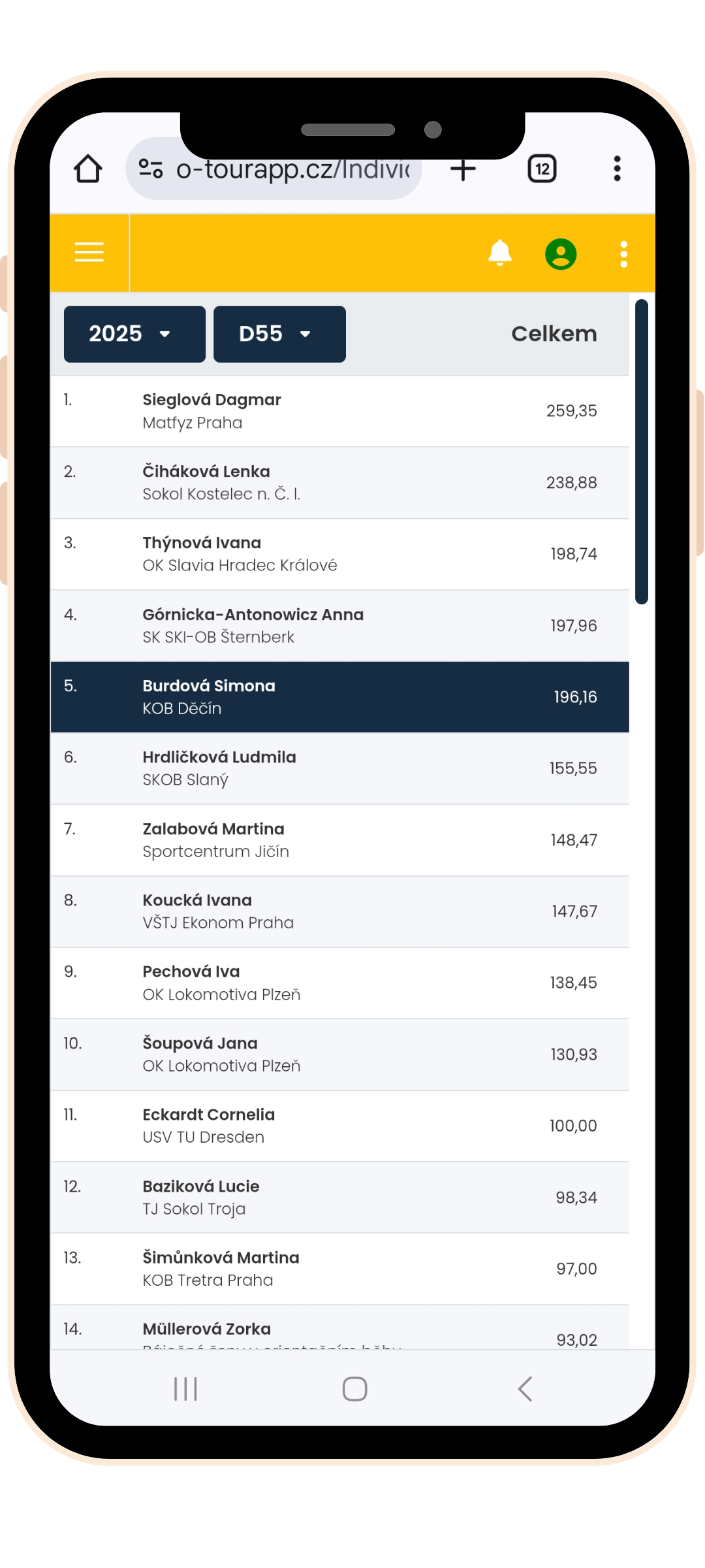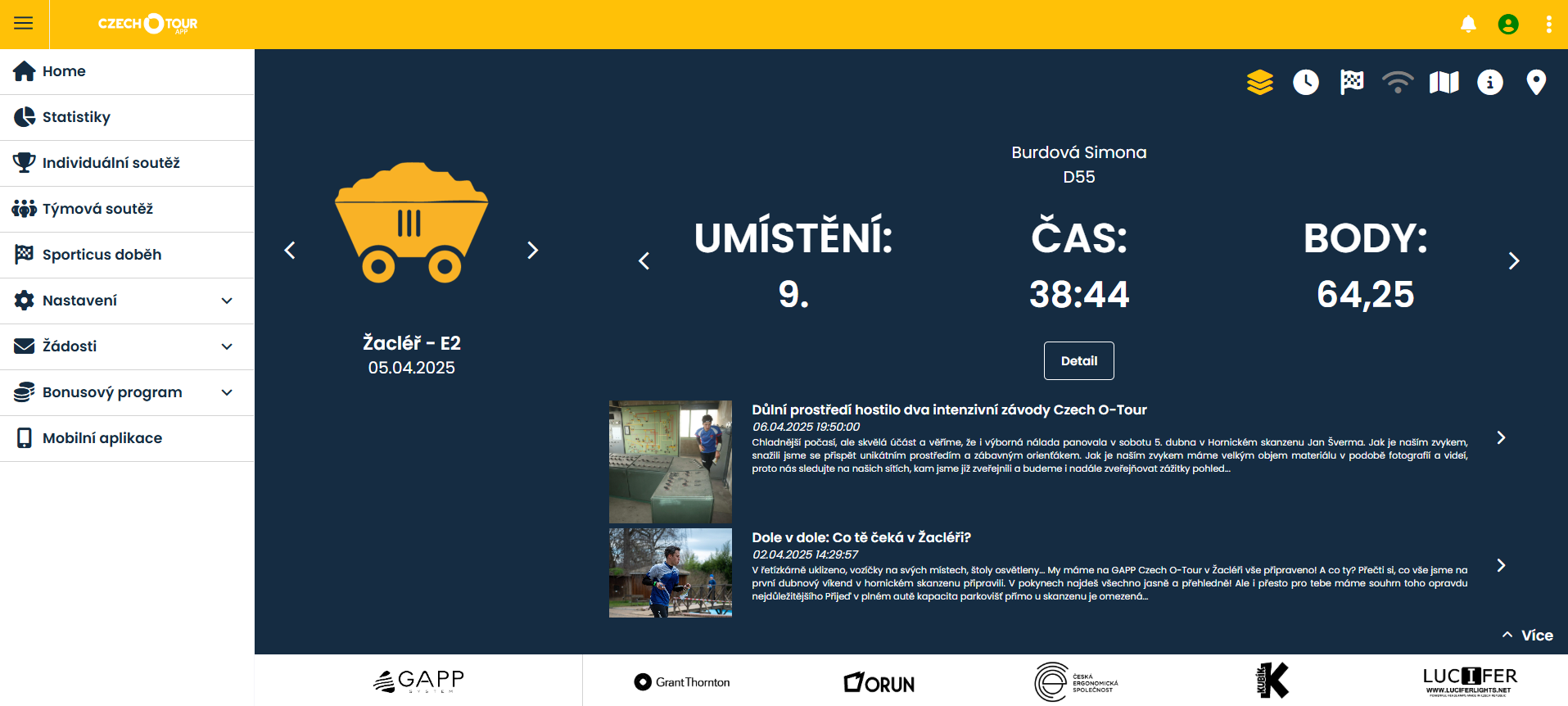 - výsledky individuální soutěže, klubové soutěže a Sporticus doběhu