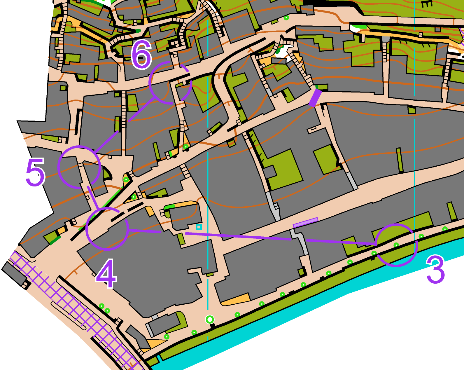Zaujalo mě zejména to slovo “dokresleny”, z toho jsem si vzal, že je přípustné naši situaci vyřešit tak, že místo lešení zakreslíme fixou do mapy. Ale máme použít fialovou? No zkouším to v papírnictví a nakonec nejlepší výsledek podává černá fixa, i když schody stále trochu prosvítají. Pokud by ale dle pravidel stačilo mít informaci jen vyvěšenou na startu, tak naše zakreslení + vyvěšení na startu bude určitě dostatečné.