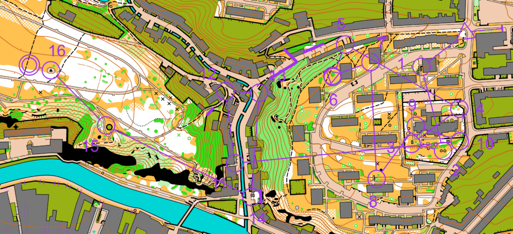 Nakonec tak celou tuto část zkracujeme a využíváme školku alespoň na první 2 koridory startu. Ulice Hanělova se pak přechází v klidu ve třetím koridoru k mapám. Prostor se nám ale těmito dvěma úpravami natolik osekal, že nezbylo nic jiného, než nejdelší kategorie poslat na řeku do poměrně nudného prostoru okolo náměstí. Zde se alespoň nabízely 2 poměrně zajímavé volby, ale nadšení z tohoto řešení ve stavitelském týmu rozhodně nepanovalo.