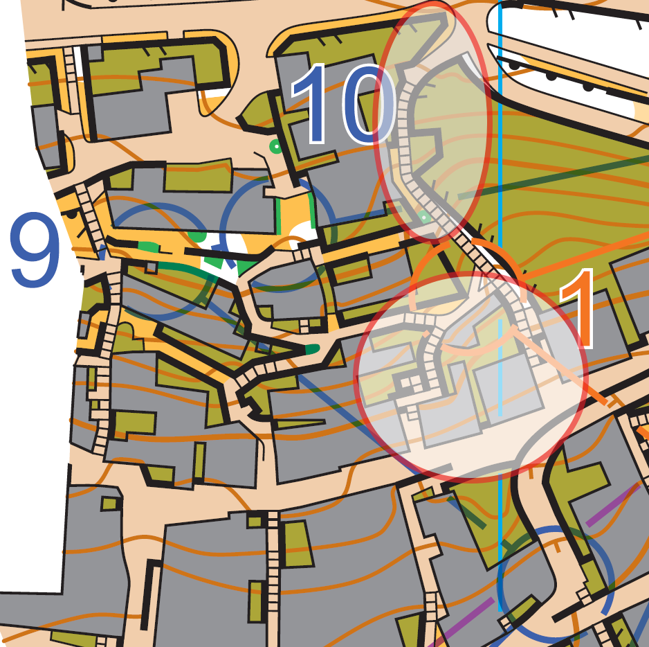 Škola tak byla nakonec využita alespoň pro příchod závodníků z parkoviště, abychom je zbytečně netahali ulicí Hanělova a neodhalovali tak pozici startu E2 a severní části prostoru. Zároveň školní areál posloužil pro doběh nedělního závody oblastního mistrovství ve sprintu.